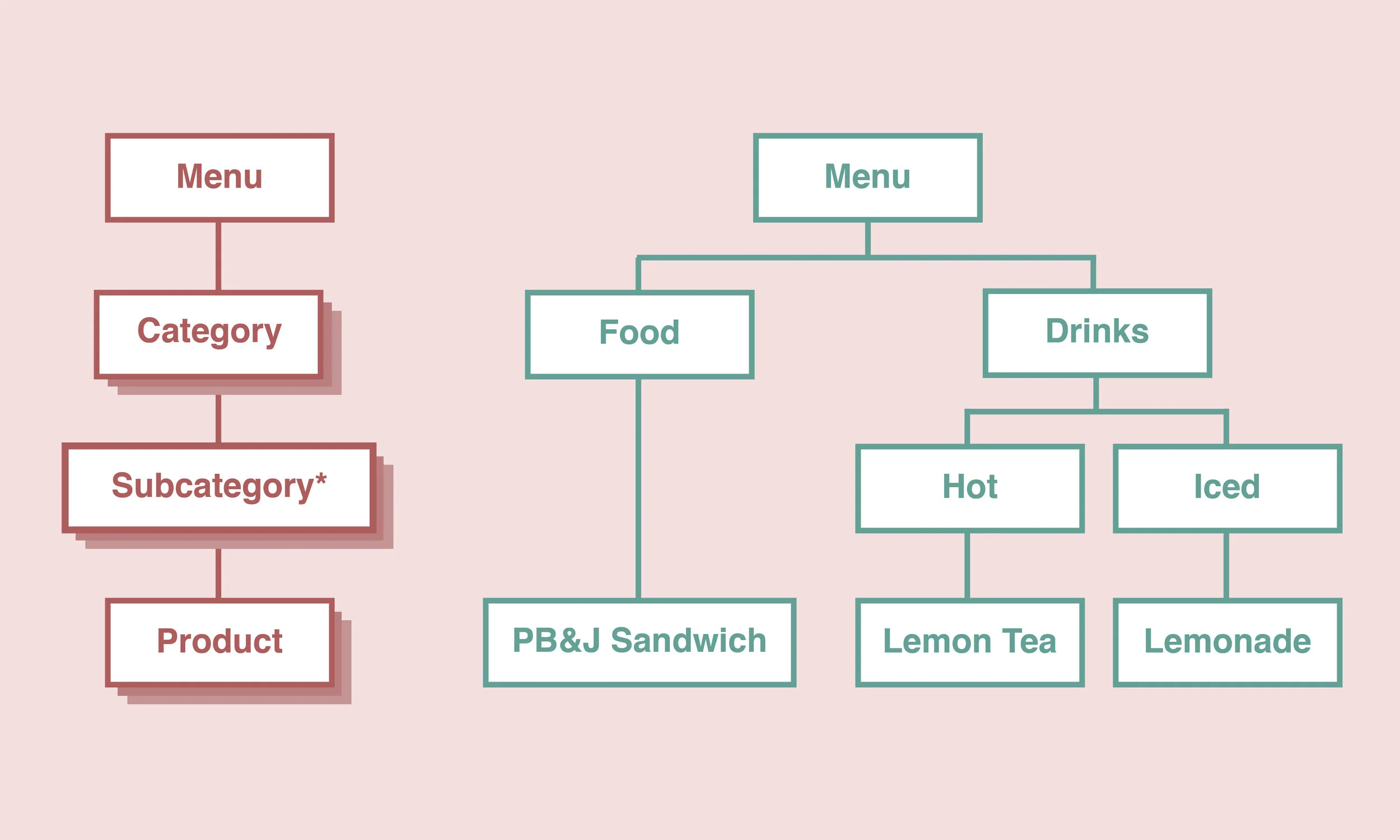 Business is doing great and we want to expand our menu further by adding a food item: PB&J sandwiches! We already have categories, but we need something to further classify them into subcategories of food and drinks.