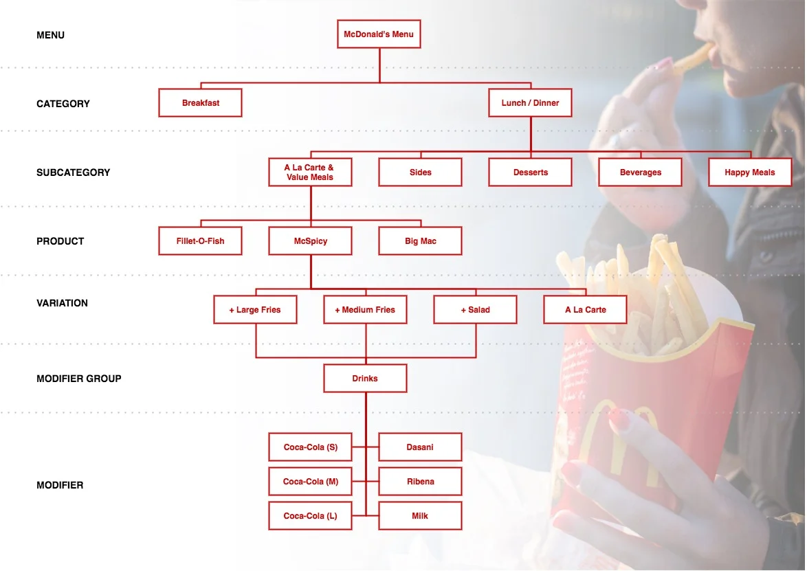 Across different types of eateries (fine dining restaurants, casual cafes, fast food chains, hawker stalls) and cuisines, there can be many ways to categorize the information on a menu for each use case. When designing the Menu module on an e-commerce platform for restaurants, the challenge lies in creating a universal structure and hierarchy that satisfies most cases.